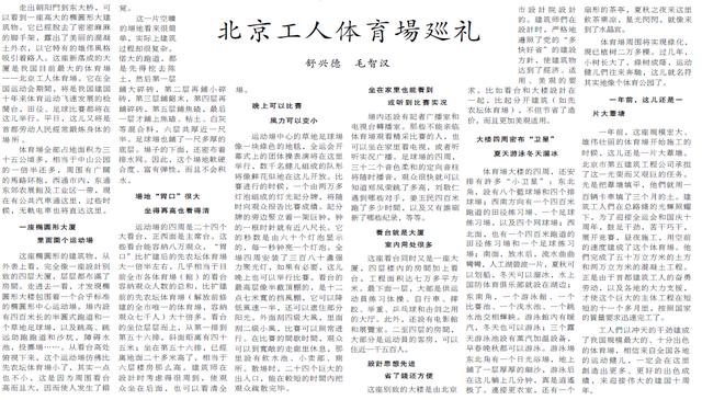 2008年2月29日《北京日报》4版,《老场新生——记改扩建竣工的工人体育场》