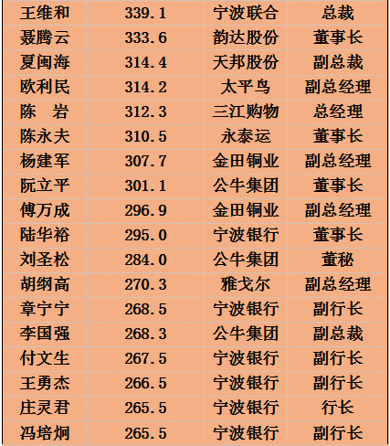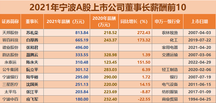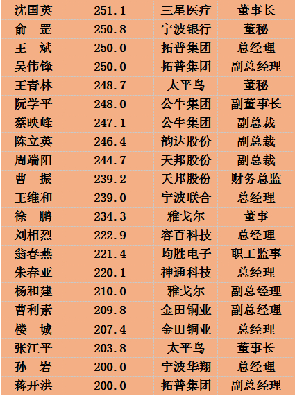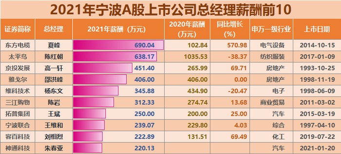 2021宁波宁波A股上市公司高管薪酬一览(200万元以上)