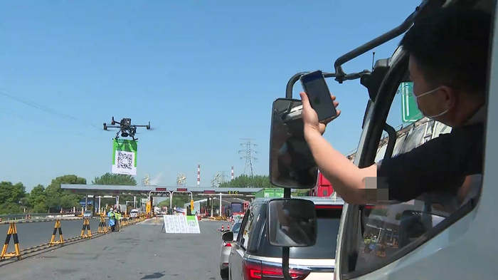 此外,浙江对假期免费通行的小客车采取平时“一车一抬杆”通行方式,确保防疫检查不遗漏。各收费口还借助无人机,引导排队司机提前扫码,减少等待时间。
