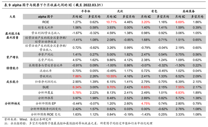 2)光伏行业,盈利和成长因子的月均IC突出,均为10%左右。