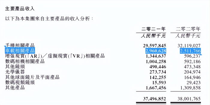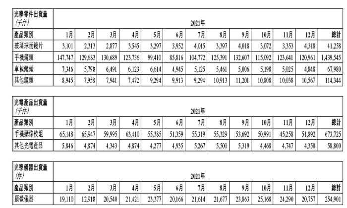 舜宇光学科技表示,2021年营收下滑主要是因为手机镜头的出货量下滑,以及手机镜头、手机摄像模组的平均销售单价下降所致。