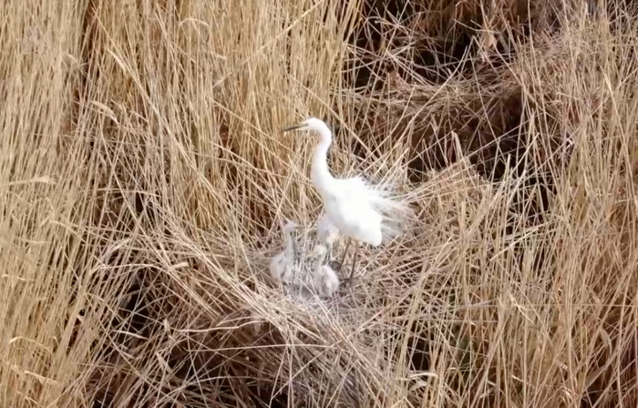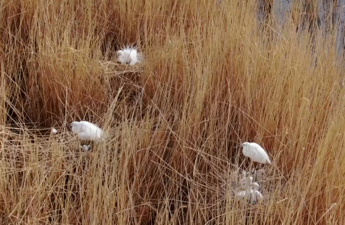 且末县达西湖的芦苇丛中400余只白鹭在此繁衍孵化,白鹭爸爸负责捕食,白鹭妈妈则专注于孵化和喂食,忙碌的身影穿梭于芦苇丛中,构成一幅温馨和谐的哺育画卷。