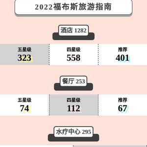 在今年的榜单中,全球共有1282家酒店上榜,其中323家五星级、558家四星级和401家推荐酒店。同时,还有74家五星级、112家四星级和67家推荐餐厅;102家五星级和193家四星级水疗中心。