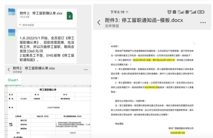 而据网络报道,近期有广田内部员工爆料,广田集团疑似在近期要求某些地区员工全员签“停工留职确认单”,停工留职后,参照当地最低基本生活标准发放工资,以深圳为例,该标准仅2360元,其中还包括了个人社保缴纳部分。