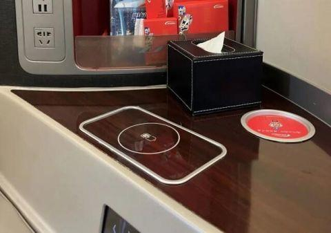 商务座席的充电接口有插孔和USB两种方式,同时还支持手机无线充电。