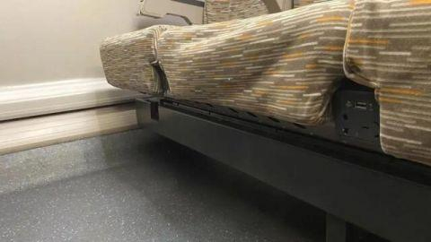 硬卧车厢的充电接口位于走廊壁板小茶几下方,一个车厢有三个充电接口。