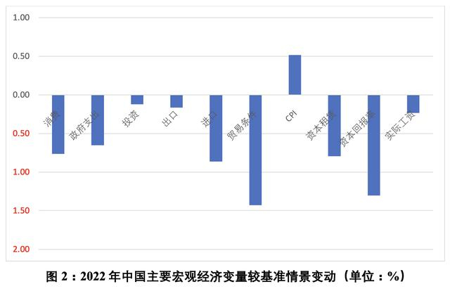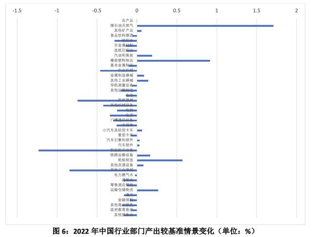 能源价格上涨将对中国产业链中下游行业部门产生一定的成本压力,影响行业产出。模拟结果显示,2022年中国大部分制造业行业部门的产出都较基准情景出现下降。价格上升压力将会进一步传导至消费领域,抑制消费需求增长,不利于经济复苏。