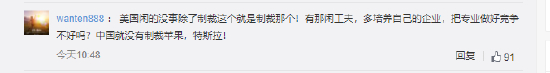 对于此消息,有网友表示:美国闲的没事除了制裁这个就是制裁那个!有那闲工夫,多培养自己的企业,把专业做好竞争不好吗?中国就没有制裁苹果,特斯拉!