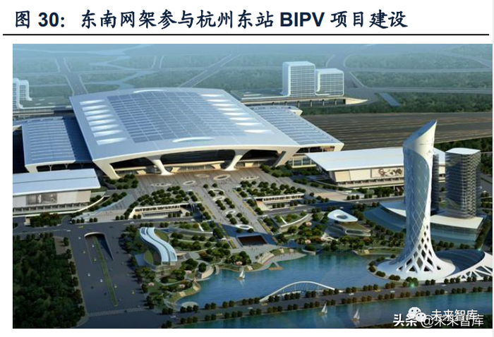 在BIPV和储能需求释放背景下,公司重点布局BIPV,积极转进绿色光伏建筑产业。技术层面,公司拥有光伏建筑核心专利20余项,拥有省级光伏建筑一体化施工工法, 是全国唯一“装配式钢结构住宅低碳技术创新及产业化示范基地”。项目层面,公司 目前已形成BIPV金属屋面系统核心技术,并参与杭州东站、兰州中川机场二期、京 沪高铁德州东站等BIPV项目,经验丰富,技术成熟。例如杭州东站总建筑面积约32 万平方米,钢结构主要由地下、高架和屋盖部分组成;屋面采用光伏一体化铝锰镁 合金直立锁边系统,共使用超过44000块电池板,铺设12万m2发电装置。从运行情 况看,该电站可满足杭州东站30%的用电需求。