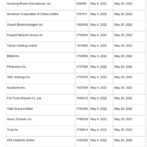 今年3月31日,中国证监会表示,对于一些企业被SEC列入有退市风险的清单,经向美国SEC了解,这是美国监管部门执行《外国公司问责法》的一个正常程序,列入清单的公司是否在未来两年真正退市,最终取决于中美审计监管合作的进展与结果。