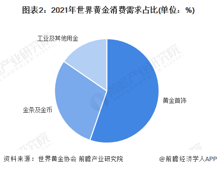 从具体需求来看,其中,黄金首饰消费量占比最高,占全球黄金消费比重的50%以上;金条及金币消费量1180.37吨,占比接近30%。