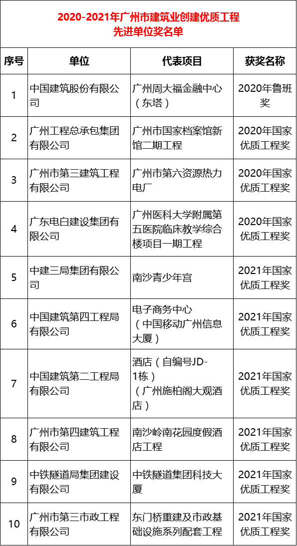 2022年广州建筑业优秀企业、优秀企业家、优秀项目经理名单公布!
