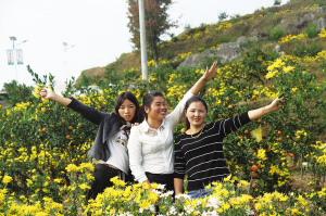 经果林套种菊花 “荒坡坡”变“金窝窝”