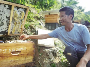 “我们这地方海拔高,灌木密,是养蜂的好地方。”在一处密林,养蜂人邹波正捣拭着蜂箱,箱缝间的一粒粒蜂蜜飘散出沁人心脾的香甜气息。“今年2月以来,我共销售蜜蜂20箱,收入近2万元;销售蜂蜜60余斤,收入1万元左右。”邹波一边娓娓道来,一边开箱检查、割蜜、过滤、包装。