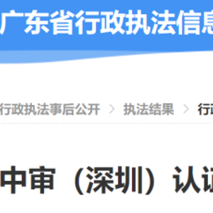 近日,广东省行政执法信息公示平台公布一则行政处罚信息。中审(深圳)认证有限公司因未及时处置暂停期满的知识产权管理体系认证证书,被广东省市场监督管理局罚款9.5万元。