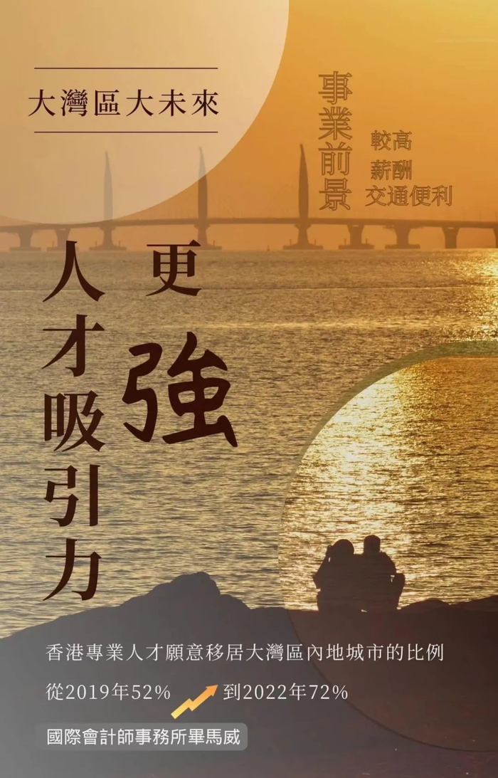 大湾区作为中国开放程度和国际化程度最高的地区之一,其广阔发展前景也吸引大量海内外优秀人才融入发展、扎根落户。国际会计师事务所毕马威中国日前发表的一份《2022年香港高管人员薪酬展望》报告显示,在毕马威研究大湾区机遇的4年内,香港专业人才愿意移居大湾区内地城市的比例正逐年递升,2019年时为52%,到2022年时已增加到72%。较佳的事业及行业发展前景、交通便利、较高薪酬、获得更广阔的工作视野,成为受访者愿意移居到大湾区内地城市工作的主要原因。