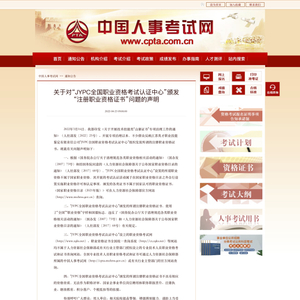 澎湃新闻记者查询发现,人力资源和社会保障部人事考试中心今年4月23日上午在旗下网站中国人事考试网发布《关于对“JYPC全国职业资格考试认证中心”颁发“注册职业资格证书”问题的声明》。