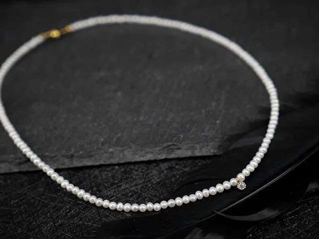 选用3~4mm直径的天然淡水珍珠,有润泽的光晕,优雅玲珑。