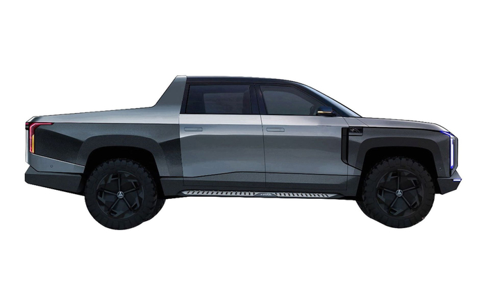 从公布的照片可以看出三一皮卡在设计方面非常具有未来感和金属质感,车头平直方正,十分具有力量感,在大灯组方面新车采用了细长垂直的日间行车灯和平直的狭长的LED大灯组,最为瞩目平直方正的车头带有可发光的三一重工LOGO,整车从正面来看除了显眼的日间行车灯和发光的三一LOGO外在下保险杠方面还有一组LED下雾灯,在车厢上方也布局了一组LED示高灯,同时在日间行车灯前部还有两个隐藏式充电口。