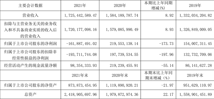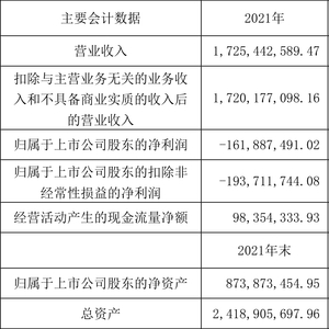 数据显示,2021年公司加权平均净资产收益率为-16.48%,较上年同期下降37.66个百分点;公司2021年投入资本回报率为-17.45%,较上年同期下降38.42个百分点。