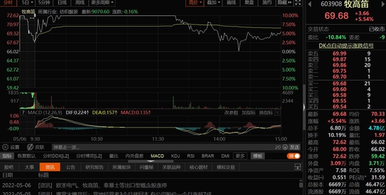 截止收盘,牧高笛报69.68元/股,上涨5.54%,换手率10.19%,总市值46.47亿元。五个交易累计上涨32.6%。网友在股吧纷纷表示,“高位吊颈线,下周直接摁跌停”、“趁别人午睡出货,这庄是个狠角色,凉了”、“又来墓高地?”。