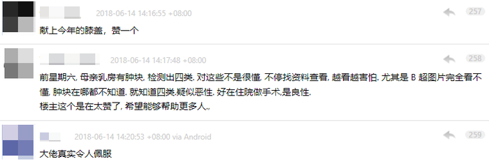 也有网友家人罹患乳腺癌,对此充满了未知和恐惧。