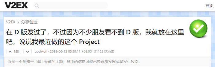 2018 年,一位名叫 coolwulf 的楼主开了个帖子,说自己做了一个网站。