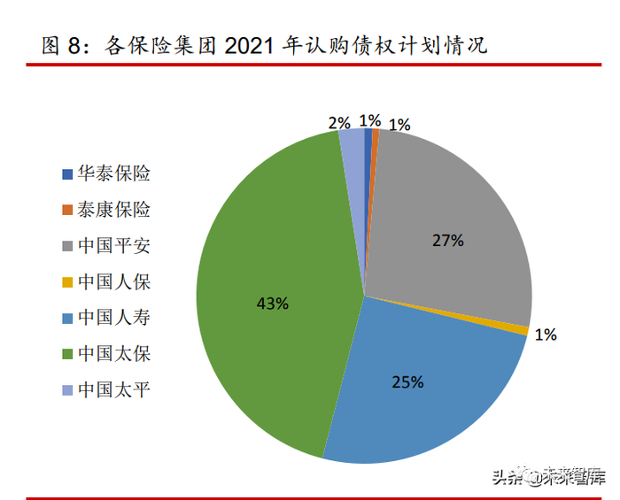 我们根据各保险公司官网公开披露的资金运用信息,对中国人保、中国太保、中国人寿、 中国太平、泰康保险、中国平安、华泰保险集团公司及其下属子公司 2021 年的债权投资计划 的投资情况进行了统计: