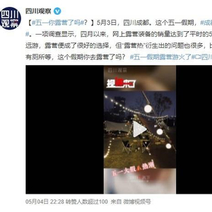 受疫情影响,这个五一假期,短途游、周边游成为人们出行的主要方式,而个性化、创新性十足的露营游更成为休闲度假的热门之选。数据显示,今年五一假期露营相关产品(住宿、出游)的预订量是去年的3倍左右。露营游的火热,也吸引了投资者的目光,2021年露营产业市场规模达299亿元,预计2022年,市场规模将突破350亿元。