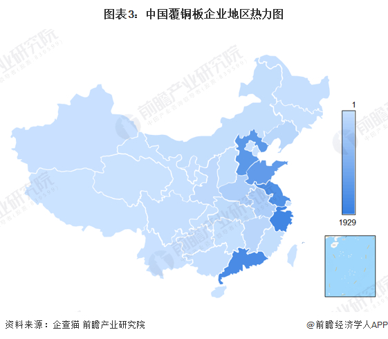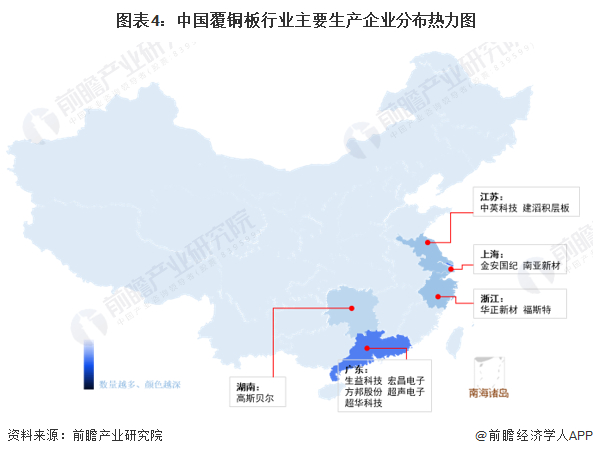 覆铜板行业产业链区域热力地图:华东地区为主要聚集地