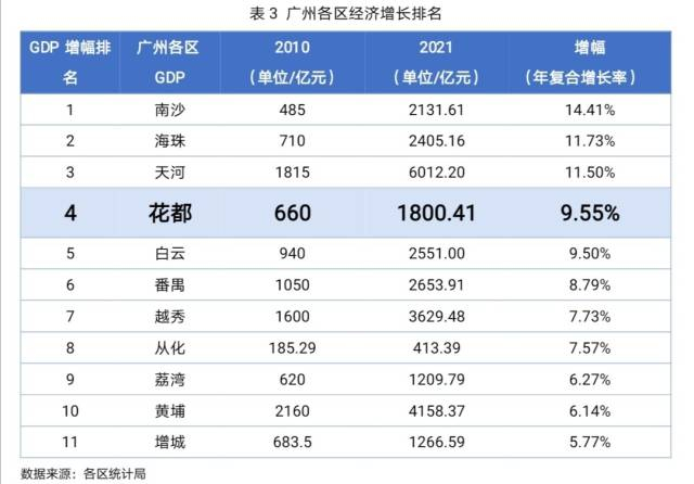 近十年,花都的经济增长速度在全市排在第四,在外围区中仅次于南沙。