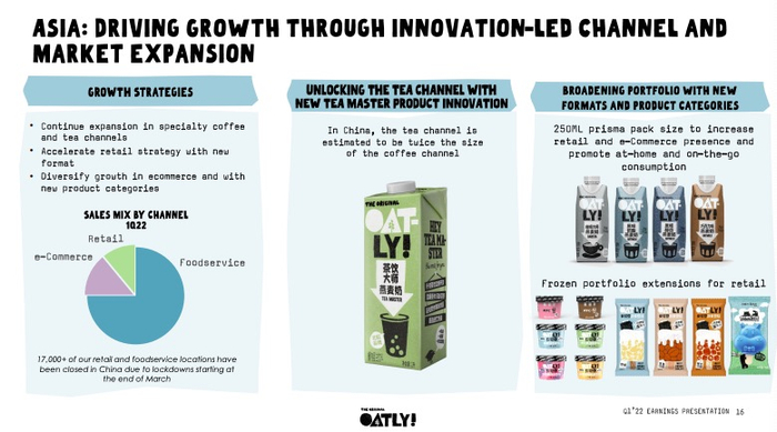 OATLY收入增长受到多个不利因素影响,包括低于预期的产量,以及低于亚洲(主要是中国)的预期销售额。这主要是由于疫情反复带来的影响,餐饮服务场所关闭;以及新设施的增加继续受到全球供应链中断和旅行限制的影响。