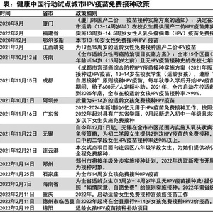 ▲全国多地逐步推进适龄女性HPV疫苗普遍接种策略。来源:国信证券研报