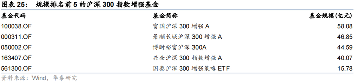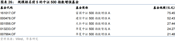 下表展示了规模排名前5的沪深300指数增强基金和中证500指数增强基金。
