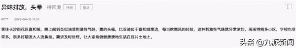 还有人表示,“家住长沙雨花区嘉和城,晚上闻到类似油漆刺激性气味,熏的头痛,比亚迪位于嘉和城南边,每当吹南风的时候,这种刺激性气味就异常浓烈,周围特别多小区,学校也非常多,很多好朋友大人流鼻血。要求及时处理,让大家能健健康康地生活在这片土地上。”