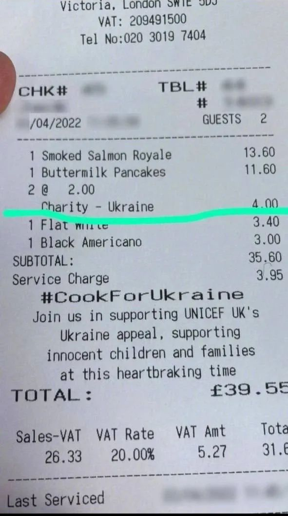 事实上,类似的情况早就发生在了英国。 今年4月,有居住在伦敦的网友晒图称,自己被额外收取了4英镑来“支持乌克兰”。