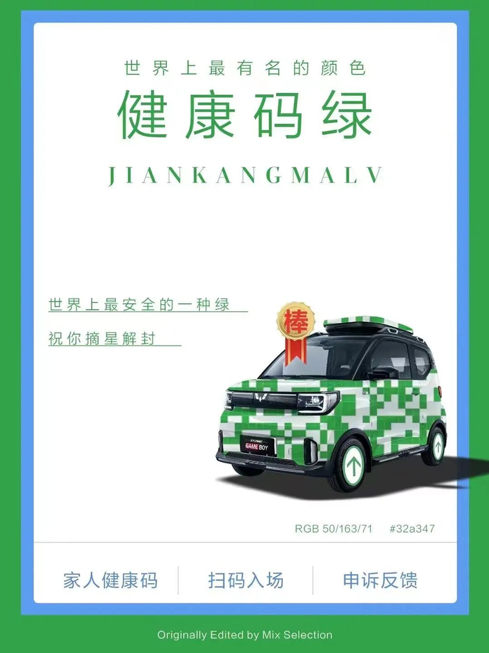 以上这组目前只是五菱出的一组图,后续会推出相应的衍生车贴,人家正经的车型颜色还是很正经的,比如:牛油果绿、飓风魅影(黑)、丛林穿越(绿)等等,别问,问就是正经。