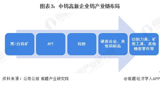 中钨高新背靠中国五矿集团,打通了钨全产业链布局,经营着集矿山、冶炼、加工、贸易于一体的完整钨产业链,在钨矿(托管)、钨粉、工具/刀具、精密零件等环节均有较强的竞争力。其中,在下游的切削刀具制造市场的品种规模和技术水平等方面位居国内领先地位。
