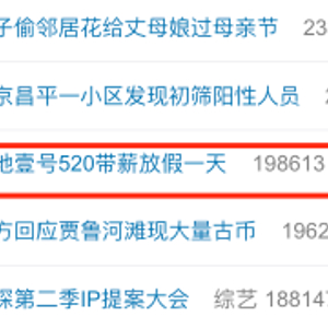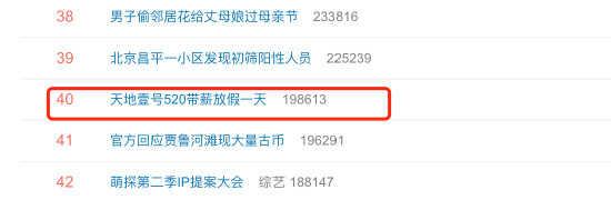 5月9日下午,#天地壹号520带薪放假一天#登上微博热搜榜单。