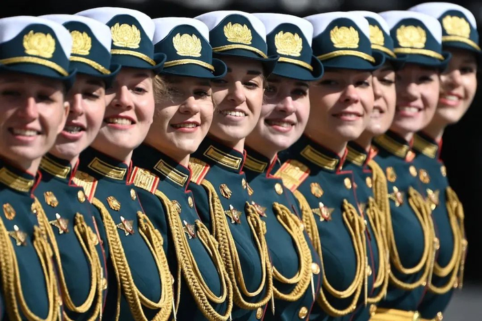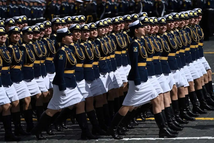 当地时间2022年5月9日,俄罗斯首都莫斯科举行俄罗斯纪念卫国战争胜利77周年红场阅兵。女兵列队走过红场。