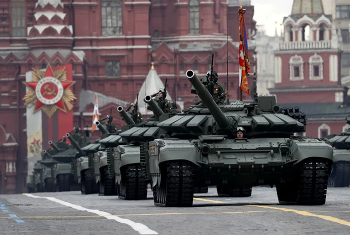 2022年5月9日,俄罗斯莫斯科胜利日阅兵式期间,俄罗斯 T-72B3M 主战坦克行驶红场。