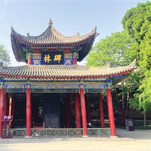 跨进碑林的大门,迎面可以看到由民族英雄林则徐当年题写的“碑林”两个字赫然于碑亭之上,字的结构匀称,笔画挺拔有力,俊秀中不失丰伟雄健。碑林里最引人注目的是,矗立在广场上的《石台孝经碑》,它在众多的碑石中,体积最大,形制最独特,移入碑林最早。整个六米多高的巨石伫立在三层石台之上,因此而得名。最上头雕着灵芝云纹的碑头,象征着“天”;石碑下面装饰有蔓草图案代表着“地”;中间是由唐玄宗李隆基亲自书写的记录孔子与弟子谈话的《孝经》,寓意为:孝存于天地之间,以孝治天下,才能长治久安。