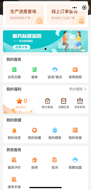 在客户体验方面,欧派家居集团小程序已实现了智能催单、查询生产进度、查看使用教程、追踪物流等功能,客户对前二次交付确认需要调整,可在线提出要求,通过OAP系统直达工厂计划,同步传递至经销商,需求响应速度低至3分钟,为客户提供了直接和总部沟通的渠道,既满足客户的灵活交付需求,也让整个流程链条更透明,可追溯,极大降低了顾客投诉率,提升交付满意度。