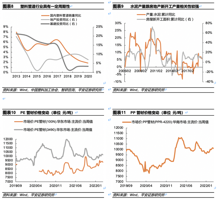 长期而言,考虑庞大的存量房二次装修需求,叠加新房需求仍高,建筑领域塑料管道需求有望维持高位。