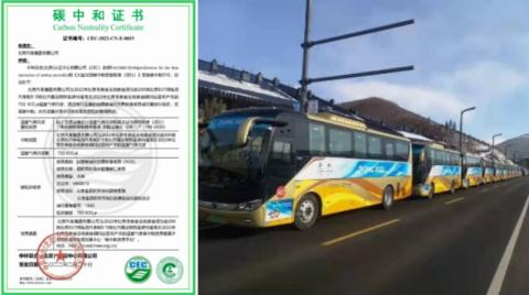 北汽集团被授予的碳中和证书以及采用氢燃料的欧辉大巴