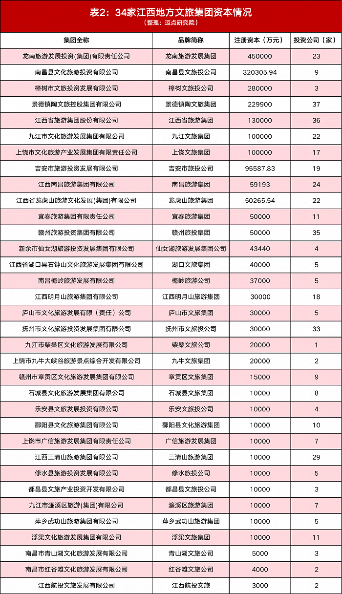 文旅集团始于过去的旅游集团,其主要承接景区运营、酒店管理、智慧旅游等职责。通过江西34家文旅集团的注册资本和对外投资数盘点,一方面可以展示企业本身的硬实力,另一方面则可以看出其产业边际效应。