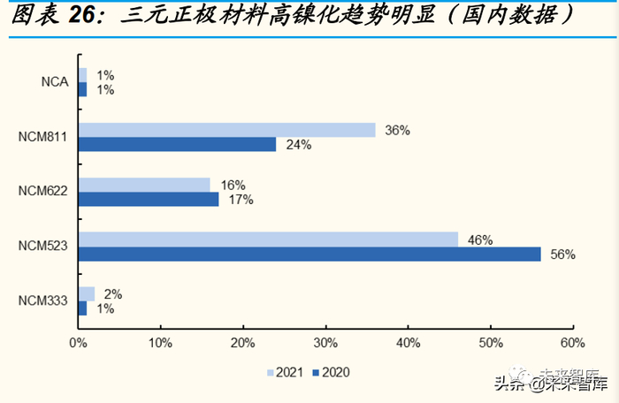 我们按 22/23 年全球新能源汽车销量增速分别为 49%/40%的假设对电池 用镍需求进行测算(同时参考 EV tank 及国金电新组预测)。考虑到高镍 三元占比的提升趋势,预计三元正极镍单耗将持续提升。测算得 22/23 年 电池领域用镍需求分别为 36.1/49.0 万吨,贡献增量 11.9/12.9 万吨。新能 源车实际产销量可能较预测有较大的偏离,乐观情况 22 年增速达到 80% 情况下多贡献 6 万吨需求,悲观情况增速仅 30%情况下需求减少约 4 万吨, 对 22 年供需平衡的整体格局影响不大。(报告来源:未来智库)