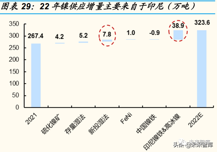 22 年硫化镍矿对应镍产品产量边际修复带来部分供应增量。