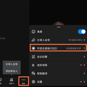 1、在钉钉视频会议界面,找到右下角三点,点击【开启云录制】。