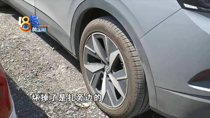 杭州的骆先生有辆大众ID4新能源车。他说前段时间修车,发现右后轮内侧有补过的痕迹,可自己没有补过胎,他怀疑4S店销售时轮胎就有问题。